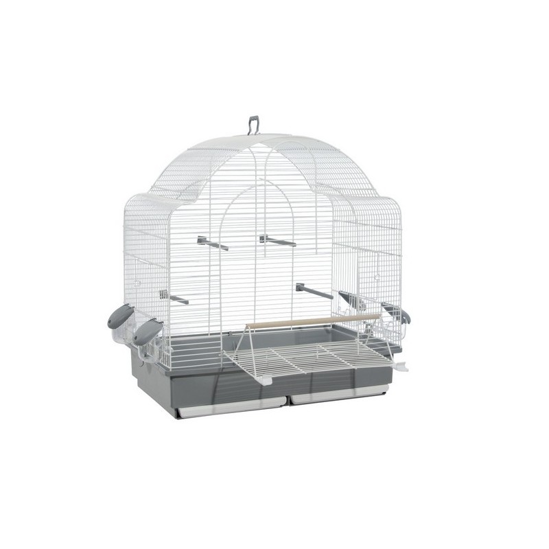 Fabricado en España, con pintura epoxi sin plomo y plástico polipropileno, no tóxico. Jaula con bandeja extraíble, fácil de limpiar. Apta para ir con pie